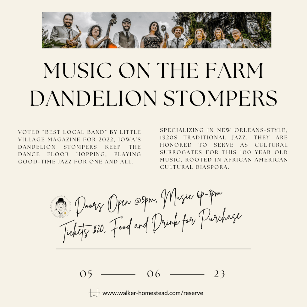 Music on the Farm! April 19, 2023 · by dandelionstompers · in Shows. · Join us at Walker Homestead on May 6, 2023 for Music on the Farm! Share this: Click to share on X (Opens in new window) X Click to share on Facebook (Opens in new window) Facebook Like Loading... Related